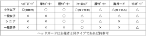 ※膝サポーターは任意で着用できるが(一般男子除く)大腿が隠れるものは使用禁止。